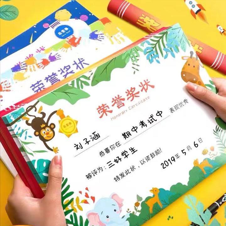 首先,我從網上買了200張獎狀,為了獎勵用的。