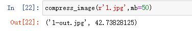 def compress_image(infile, outfile=’’, mb=150, step=10, quality=80):